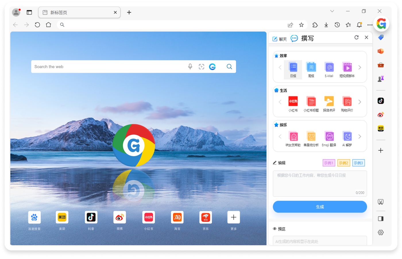 AI 支持的功能,让您更轻松、更快速地在 Web 上学习、享受、创建和工作。